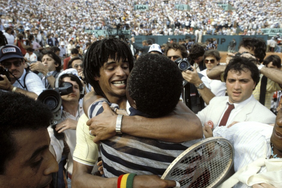 Yannick Noah era un gigante nero di 23 anni, con una cascata di dread in testa, giocava in modo spettacolare, nulla a che vedere con i noiosi svedesi. Quello che però mi aveva conquistato era il polsino rosso/giallo/verde che indossava ad ogni partita, per mostrare a tutti la sua origine africana . Io, orfano di Bob Marley da un paio di anni, in quel tennista francese, avevo trovato il mio nuovo eroe.