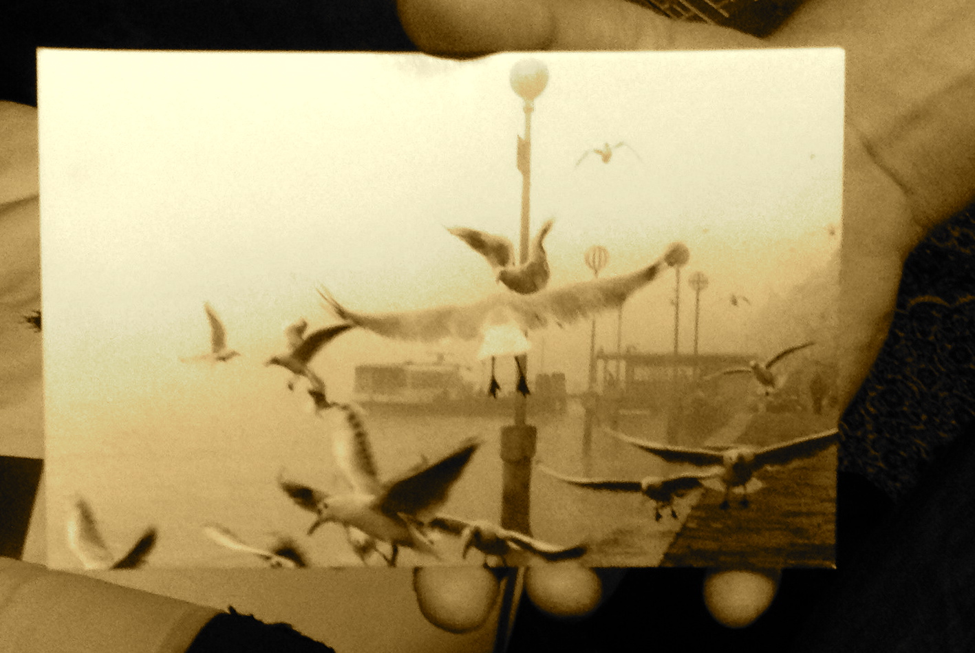 Ero felice e triste al tempo stesso, prima di salutarli mi fermai in una libreria, presi una cartolina in bianco e nero, dei gabbiani in volo sulla laguna.