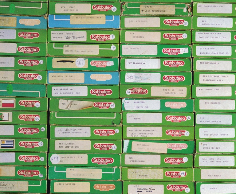 Ora, bisogna sapere che esistevano tre tipi di proprietari di Subbuteo, c’erano quelli come me, che di volta in volta cercavano supporti per il panno verde, il quale di conseguenza passava gran parte della propria vita piegato da qualche parte. Poi c’erano quelli che avevano attaccato il “campo” in modo permanente su di un tavola di compensato (di solito tutto tranne le porte), tavola che tenevano sotto il letto oppure in verticale dietro una porta e le squadre conservate nelle apposite scatole in qualche cassetto, come il mio amico figlio unico. Infine c’erano quelli che avevano il campo da Subbuteo sempre a disposizione, con le porte attaccate con le puntine e i 22 giocatori già pronti. Il mio compagno di classe laziale però andava oltre questa terza categoria, infatti lui faceva parte di quei fortunati per i quali il campo non era solamente sempre pronto, ma addirittura era provvisto di tribune con spettatori e luci artificiali funzionanti, insomma, a parte i mini fumogeni e le mini cariche della Celere, un perfetto stadio italiano in miniatura.