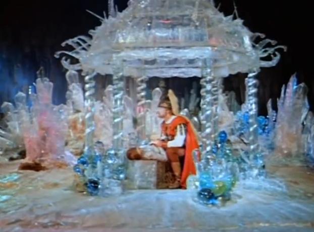 La parte che mi colpisce di più, a parte le scene delle battaglie, è quella ambientata in una specie di foresta incantata. Qui Ptushko consuma tutta la scatola dei colori, e riempie lo schermo di cristalli luccicanti, piante dalle cromie improbabili e mostriciattoli che si muovo sospesi da fili (in)visibili.