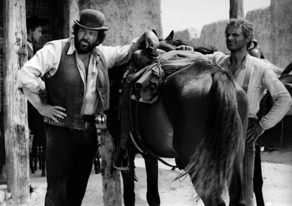 Nuotatore olimpionico, rugbista, pallanuotista, operaio nella costruzione della leggendaria “Panamericana”, pilota di aerei, paroliere per Ornella Vanoni, produttore di documentari, Carlo Pedersoli (vero nome di Bud Spencer) si era avvicinato al cinema da giovane, facendo comparsate e ruoli minori, poi nel 1967 fece il primo western da protagonista, dividendo lo schermo con un attore veneziano, Mario Girotti, ribattezzato per l’occasione Terence Hill (nome che porta tutt’ora) fortunatamente chiamato all’ultimo minuto per sostituire tale Peter Martell (aka Pietro Martellanza), infortunatosi prima delle riprese (leggesi= piede rotto per contro un muro mentre cercava di prendere a calci la fidanzata).