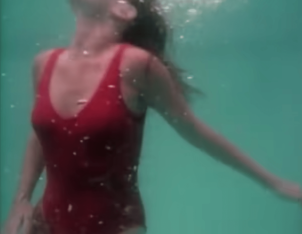 Vestita con il classico costume intero rosso (che qualche anno dopo diventerà immortale indossato da Pamela Anderson in Baywatch), June si tuffava in una piscina, raggiunta poco dopo da un coccodrillo, che sembrava ad un passo dal mangiarsela.