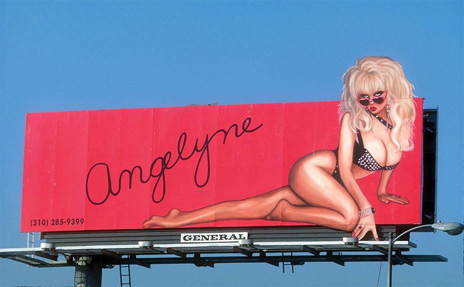 Fin dai miei primi mini tour, fui colpito da dei cartelloni giganteschi raffiguranti il profilo di una donna piuttosto procace, sopra le curve da pin up si poteva leggere, anche a decine di metri di distanza, il suo nome: Angelyne.